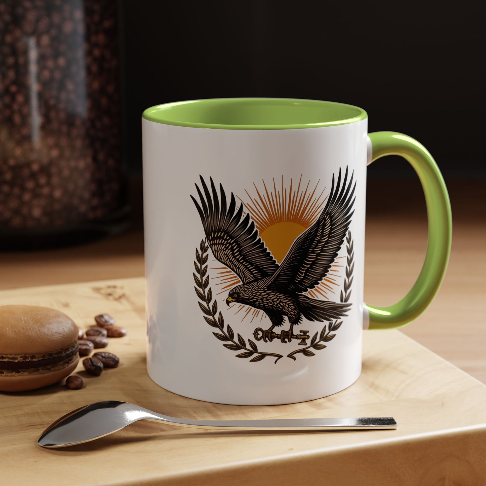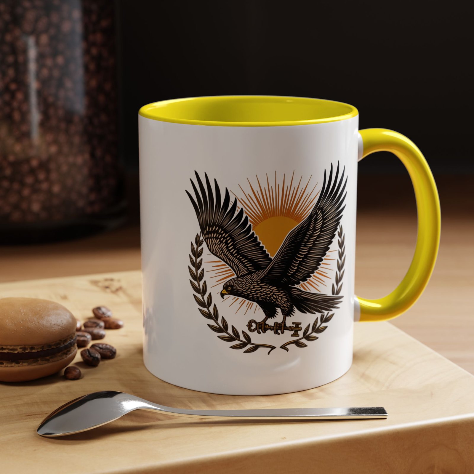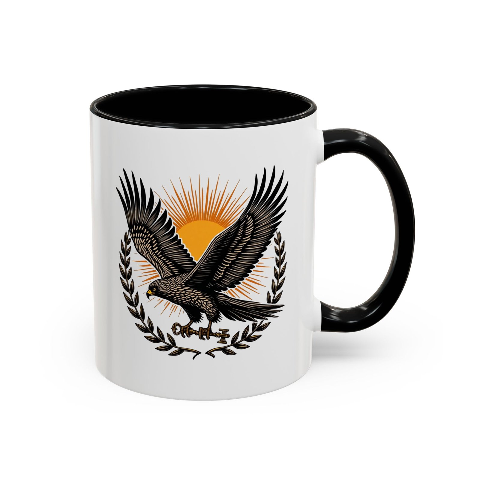 Morning light slides across the kitchen counter as a steady eagle arcs toward the rising sun. This ceramic mug pairs bold contrast—black interior and handle—with a finely detailed eagle and laurel motif, printed in vivid, lasting color. It feels sturdy in the hand, one-fingering the C-shaped handle while steam rises from coffee or tea. Bring a quiet moment of resilience and clarity to daily routines, whether you’re mapping out the day or savoring a slow weekend cup.