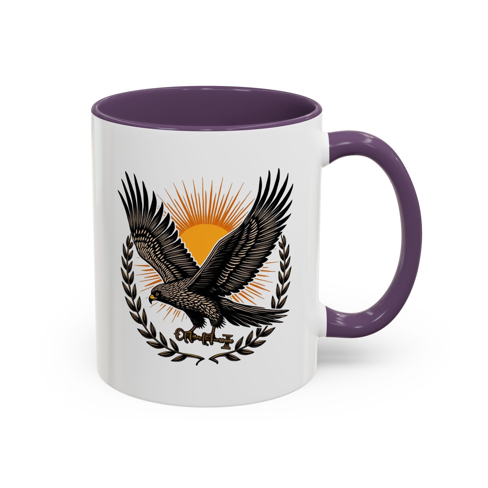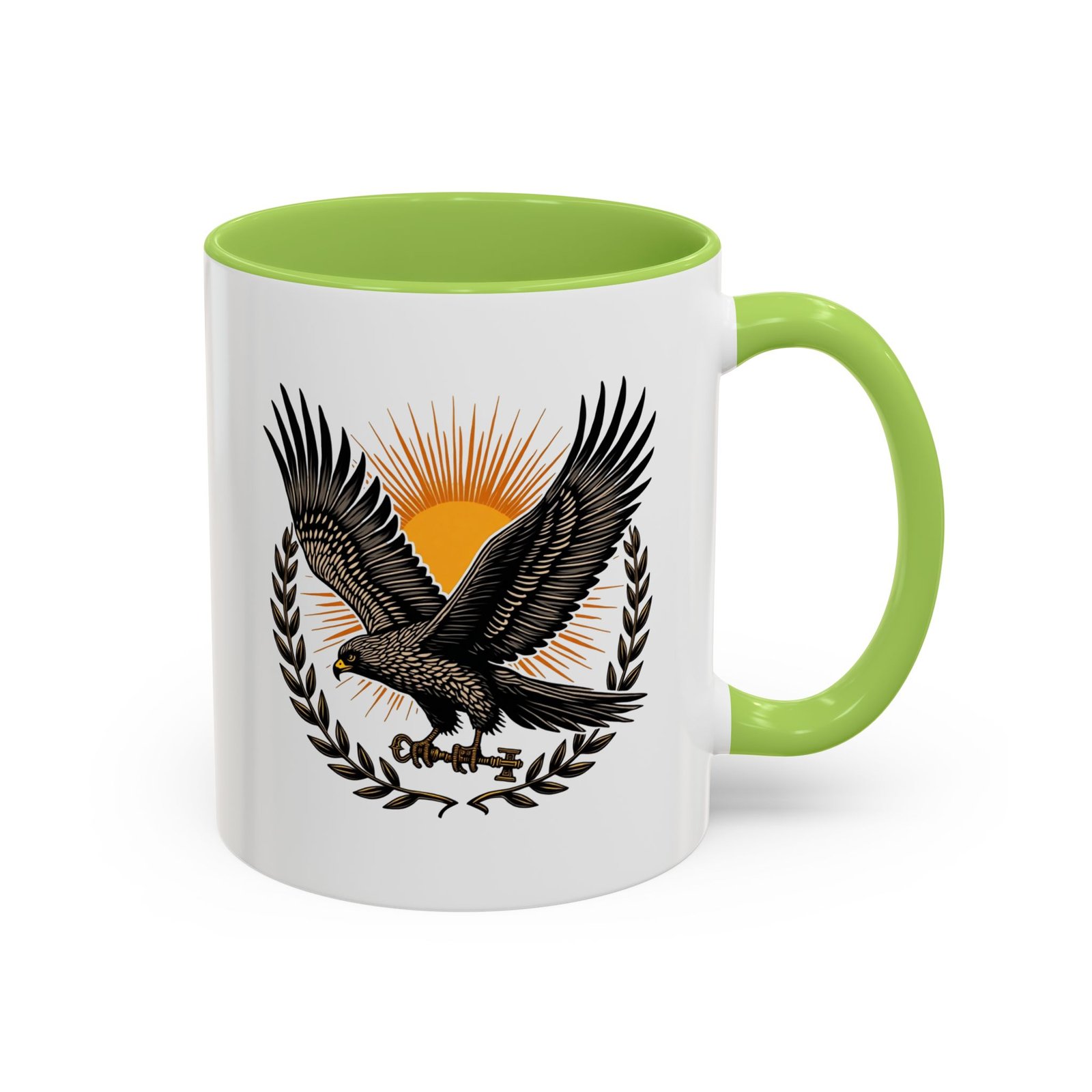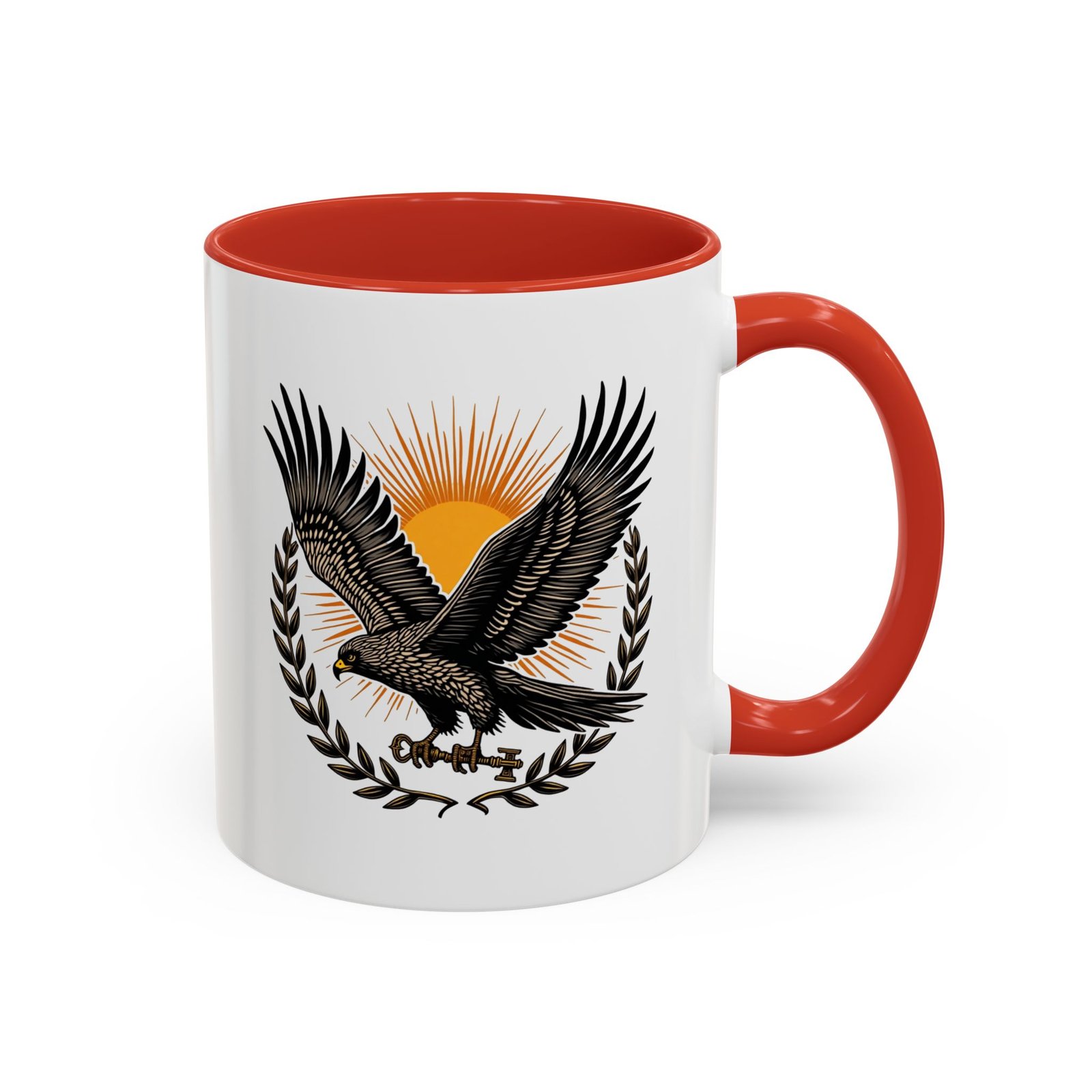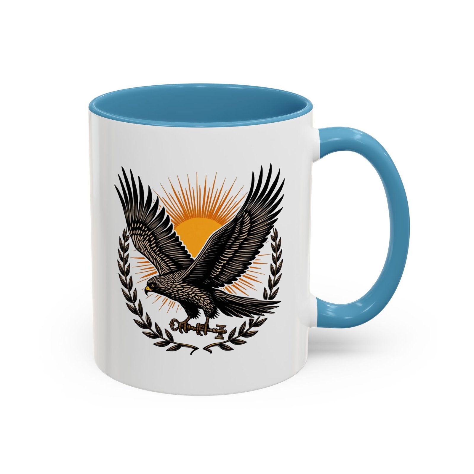 Morning light slides across the kitchen counter as a steady eagle arcs toward the rising sun. This ceramic mug pairs bold contrast—black interior and handle—with a finely detailed eagle and laurel motif, printed in vivid, lasting color. It feels sturdy in the hand, one-fingering the C-shaped handle while steam rises from coffee or tea. Bring a quiet moment of resilience and clarity to daily routines, whether you’re mapping out the day or savoring a slow weekend cup.